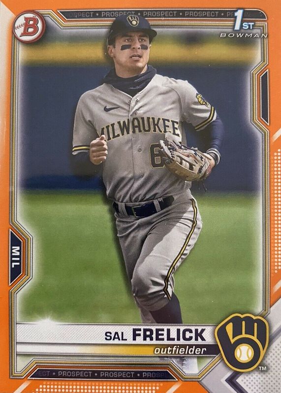 The Sal Frelick 2021 Bowman Draft #BD-172 Orange /25 (1st) card in Raw condition has not changed in price in the last 30 days and was last sold for $29.00 .
