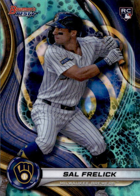 2024 Bowman's Best Sal Frelick RC Aqua Lava Refractor Rookie #/199 Brewers