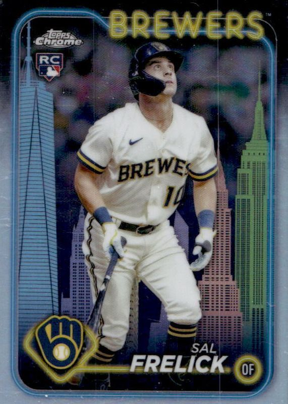 The Sal Frelick 2024 Topps Chrome #39 Big Apple Refractor /(SSP) Rookie card in Raw condition has not changed in price in the last 30 days and was last sold for $34.79 .