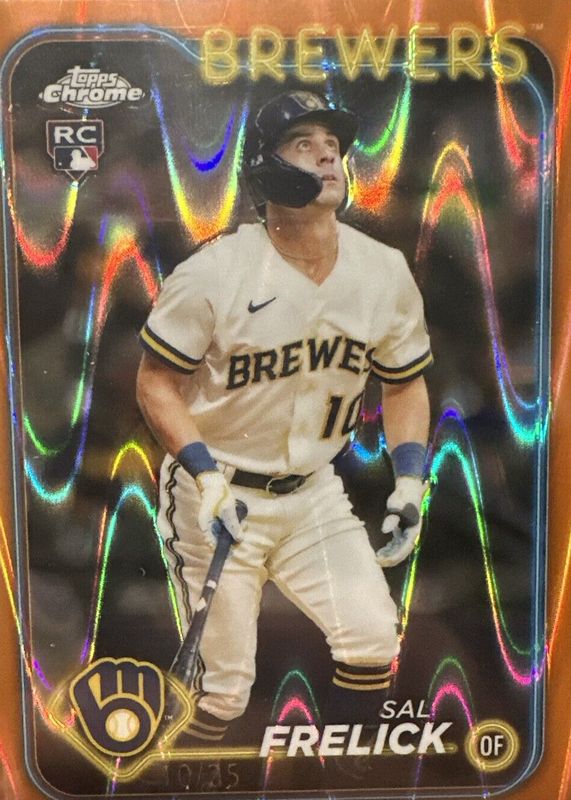2024 TOPPS CHROME #39 SAL FRELICK ORANGE RAY WAVE RC /25 MILWAUKEE BREWERS