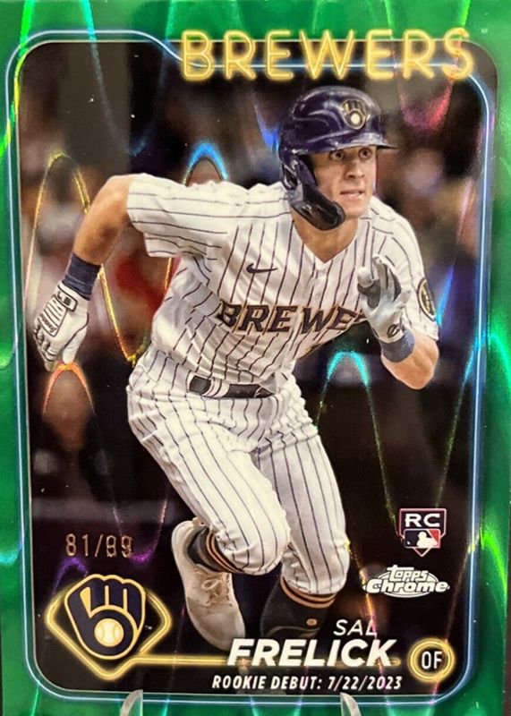 The Sal Frelick 2024 Topps Chrome Update #USC61 Rookie Debut - Green RayWave Refractor /99 card in Raw condition has not changed in price in the last 30 days and was last sold for $10.89 .