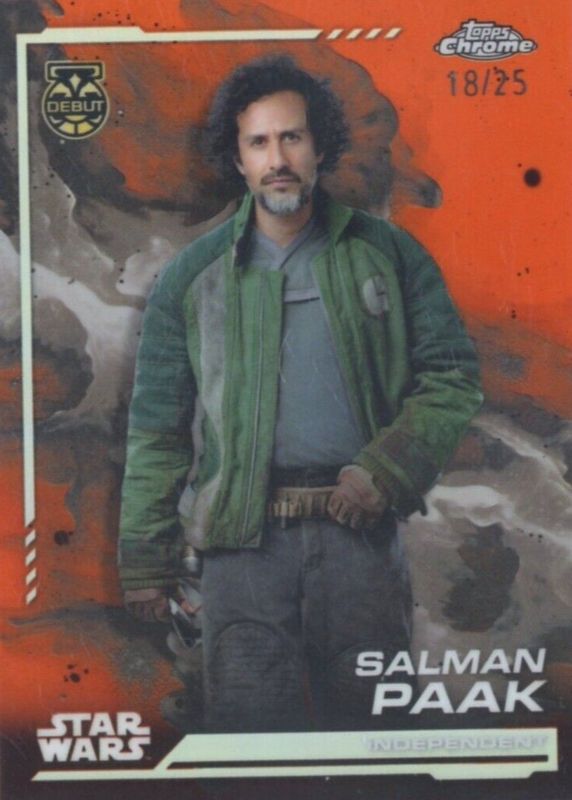 Best Prices Available For Sale of Salman Paak 2024 Topps Chrome Star Wars #93 Rebel Orange Refractor /25