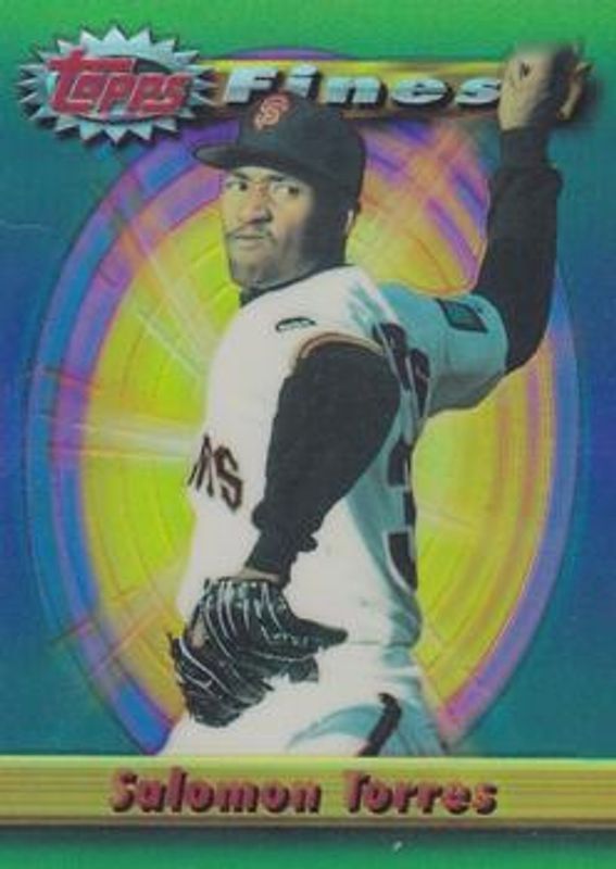 The Salomon Torres 1994 Topps Finest #439 Refractor Rookie card is 1 of 2 Salomon Torres' card variations in the 1994 Topps Finest set being tracked by Sports Card Investor, including Base.