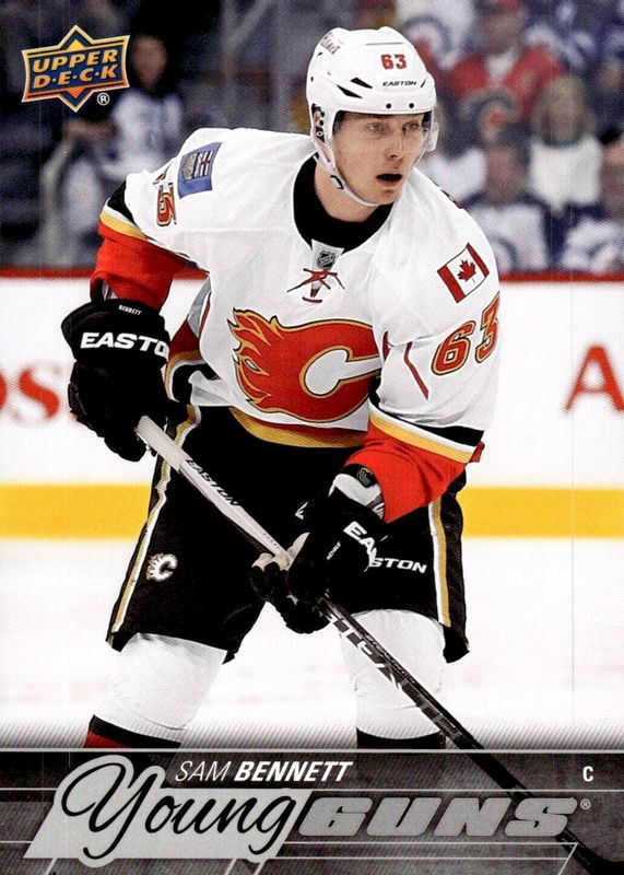 This card is 1 of 8 Sam Bennett's card variations in the 2015 Upper Deck set being tracked by Sports Card Investor, including Young Guns Base, Young Guns Canvas, Young Guns - Acetate, Young Guns - Foil, and Young Guns - UD Exclusives /100.