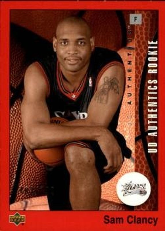 The Sam Clancy 2002 Upper Deck Authentics #94 Base Rookie card is 1 of 3 Sam Clancy's card variations in the 2002 Upper Deck Authentics set being tracked by Sports Card Investor, including Gold /250, and Rainbow /50.
