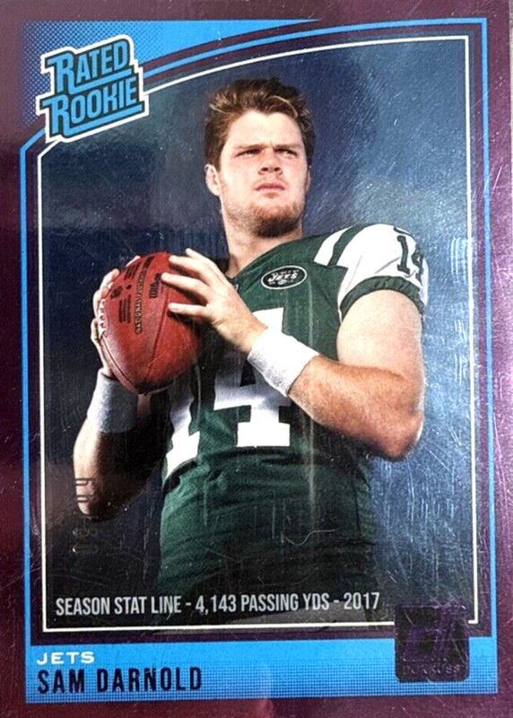 Sam Darnold 2018 Panini Donruss Rated Rookie Season Stat Line Purple Foil SP /99
