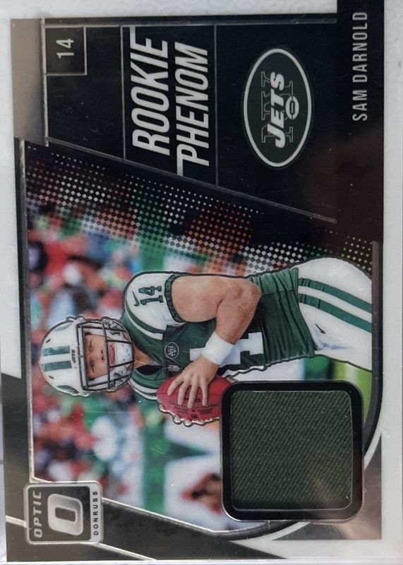 The Sam Darnold 2018 Optic #RP-SD Rookie Phenom Jerseys Vertical card in Raw condition has not changed in price in the last 30 days and was last sold for $3.00 .