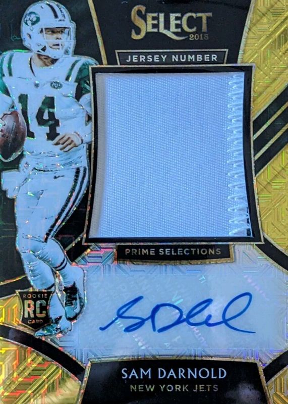 The Sam Darnold 2018 Select #PSP-SD Prime Selections Signatures - Gold /10 Rookie card in Raw condition has not changed in price in the last 30 days and was last sold for $194.75 .