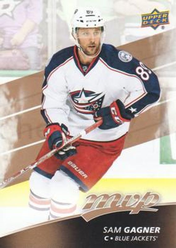 The Sam Gagner 2017 Upper Deck MVP #62 Base card is 1 of 10 Sam Gagner's card variations in the 2017 Upper Deck MVP set being tracked by Sports Card Investor, including Green Script, Puzzle Backs, Silver Script, Gold Script /100, and Super Script /25.