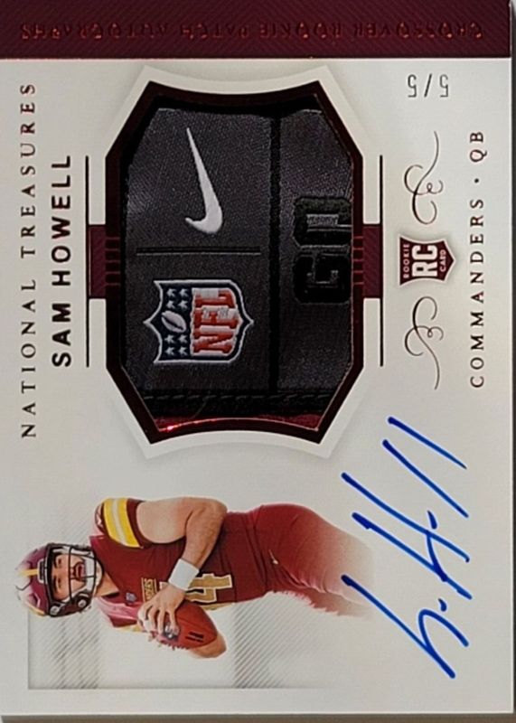 The Sam Howell 2022 National Treasures #CRPA-SH Crossover Rookie Patch Autographs - Laundry Tag /5 card in Raw condition has not changed in price in the last 30 days and was last sold for $1,305.00 .