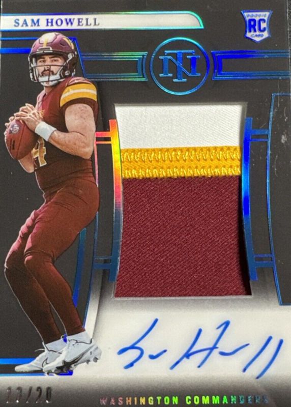 This card is 1 of 20 Sam Howell's card variations in the 2022 National Treasures set being tracked by Sports Card Investor, including Crossover Rookie Patch Autographs (/99), Rookie Patch Auto - Green Jersey Number (/14), Rookie Patch Auto /99, Rookie Patch Auto - Purple /49, and Crossover Rookie Patch Autographs - Holo Silver /25.