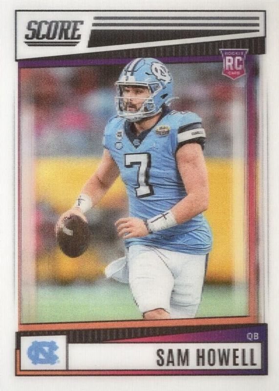 This card is 1 of 6 Sam Howell's card variations in the 2022 Score set being tracked by Sports Card Investor, including Base, Hot Rookies, NFL Draft, Protential, and Next Up /(SSP).
