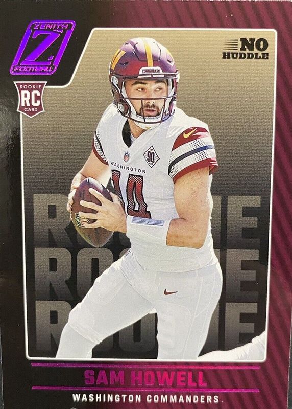 The Sam Howell 2022 Zenith #105 No Huddle Rookie card in Raw condition has not changed in price in the last 30 days and was last sold for $1.99 .