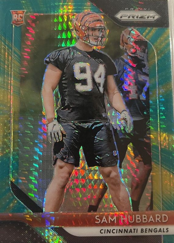 This card is 1 of 40 Sam Hubbard's card variations in the 2018 Prizm set being tracked by Sports Card Investor, including Base, Disco, Green, Lazer, and Neon Green Pulsar.