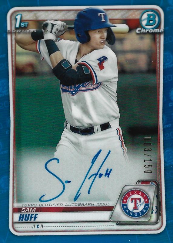 SAM HUFF 2020 BOWMAN CHROME 1ST TRUE BLUE REFRACTOR AUTO /150 Q5393