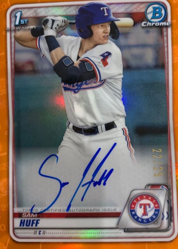 Best Prices Available For Sale of Sam Huff 2020 Bowman #CPA-SH Chrome Prospect Auto - Orange Refractor /25 (1st)
