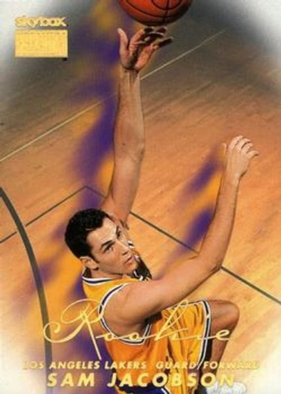 The Sam Jacobson 1998 Skybox Premium #238 Base Rookie card is 1 of 3 Sam Jacobson's card variations in the 1998 Skybox Premium set being tracked by Sports Card Investor, including Star Rubies /50, and Rookies - Rubies /25.