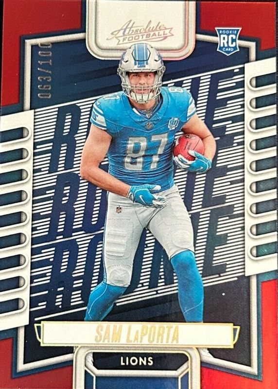 Sam LaPorta 2023 Absolute #115 Red Spectrum /100 Rookie RAW Price Guide