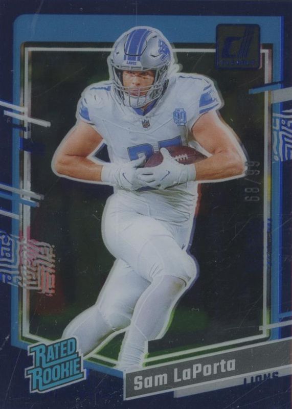 2023 Donruss Clearly Rated Rookie Blue /99 Sam LaPorta #81 RC Detroit Lions.