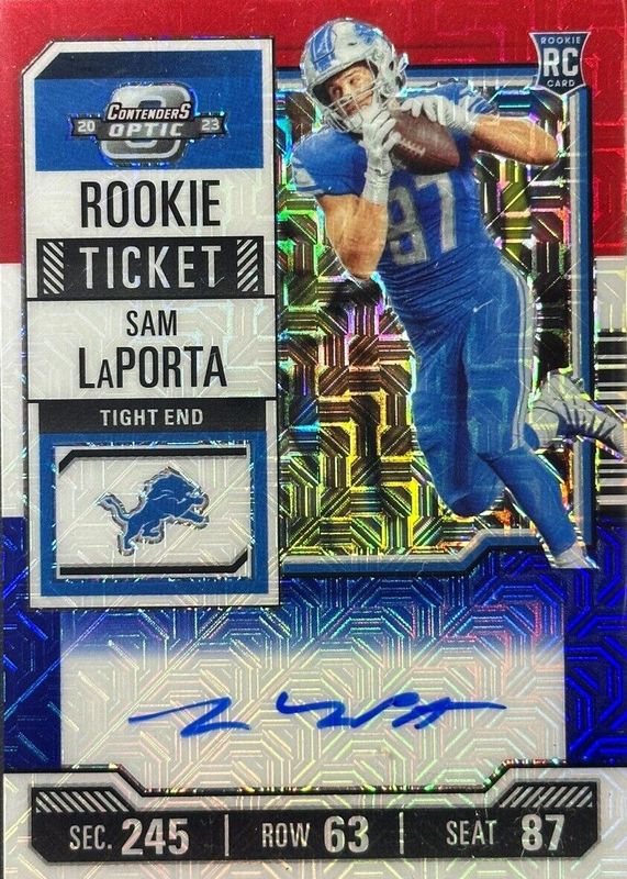 Sam LaPorta 2023 Contenders Optic #131 Rookie Ticket Auto - Red White Blue /13 RAW Price Guide