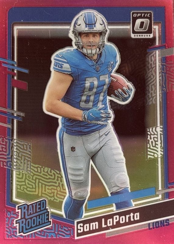 2023 Donruss Optic Sam LaPorta Detroit Lions Pink Preview Rated Rookie #332 !
