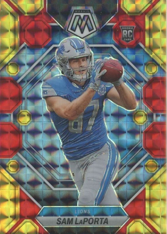 2023 Panini Mosaic RED & YELLOW FUSION MOSAIC SAM LaPORTA #360 #35/80 RC LIONS