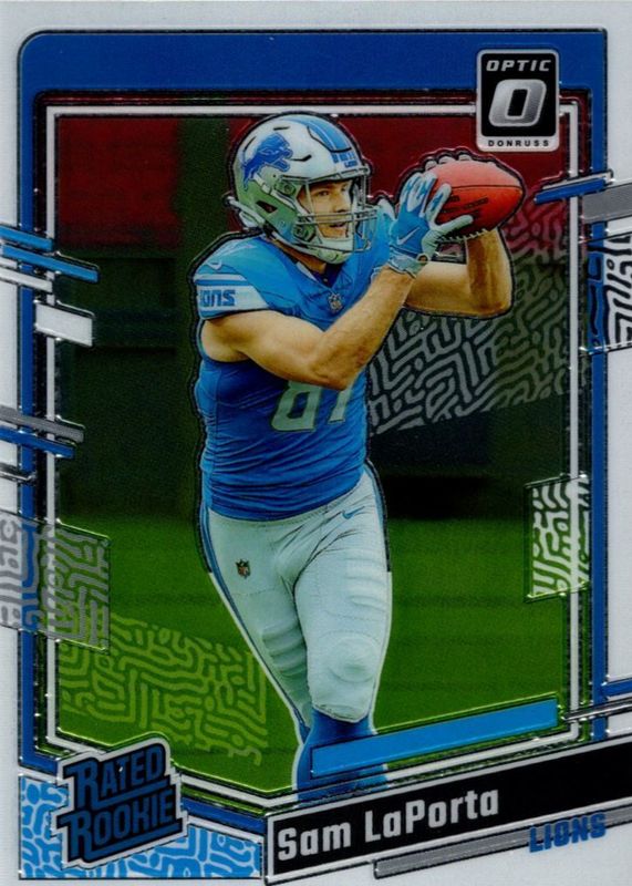 The Sam LaPorta 2023 Optic #237 Base Rookie card in Raw condition has moved up $21.01 (+2,122%) in the last 30 days and was last sold for $22.00 .