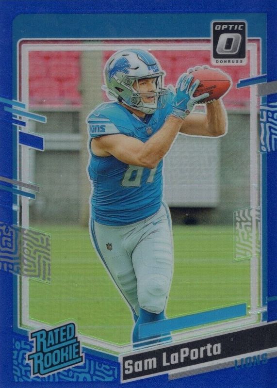 2023 Panini Donruss Optic Sam Laporta Rated Rookie Blue 138/199 #237 Lions