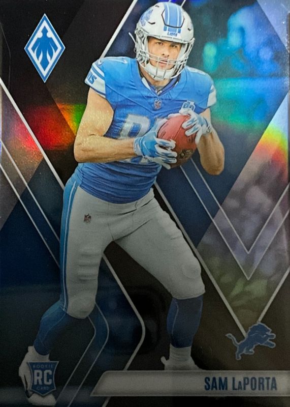 This card is 1 of 40 Sam LaPorta's card variations in the 2023 Phoenix set being tracked by Sports Card Investor, including Base, Color Burst, Silver, Silver Seismic, and Fire Burst /340.