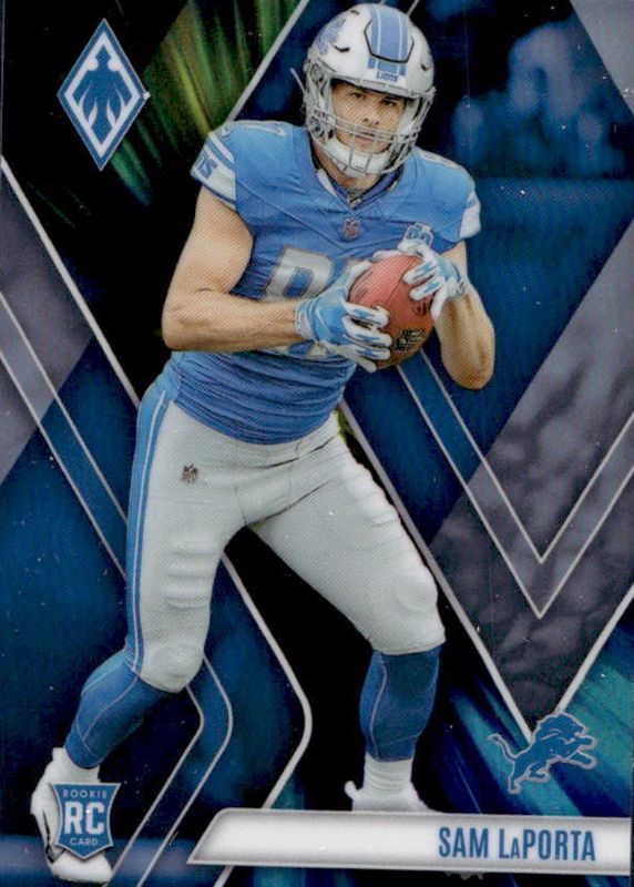 This card is 1 of 40 Sam LaPorta's card variations in the 2023 Phoenix set being tracked by Sports Card Investor, including Base, Color Burst, Silver, Silver Seismic, and Fire Burst /340.