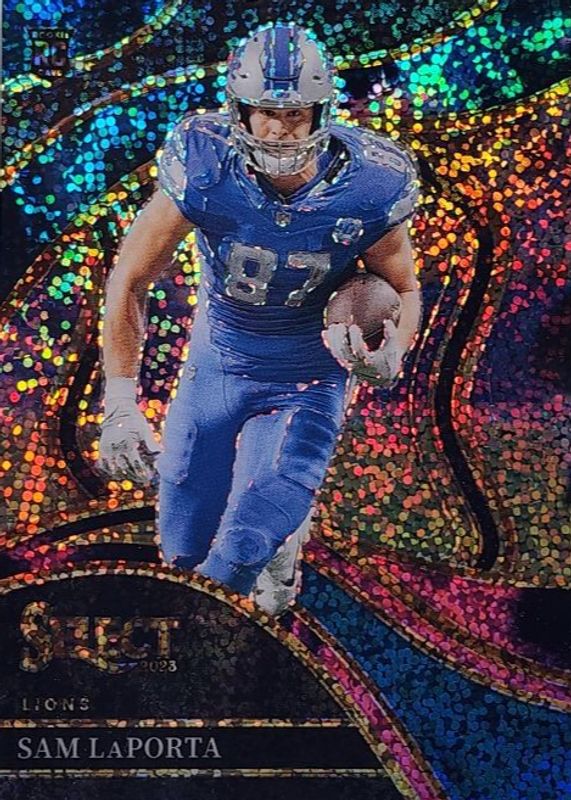 This card is 1 of 222 Sam LaPorta's card variations in the 2023 Select set being tracked by Sports Card Investor, including Club Level, Concourse, Field Level, Premier Level, and Club Level Black & Gold Die-Cut.