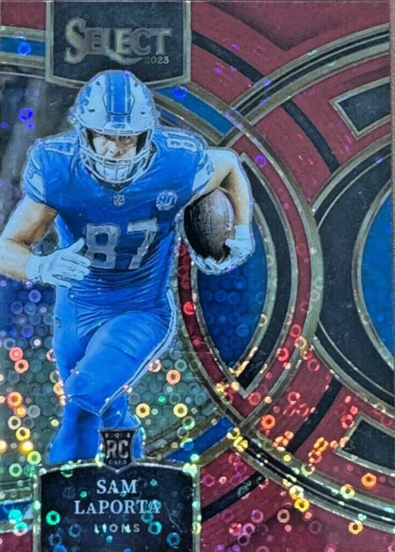 2023 Panini Select Sam LaPorta #106 Red Disco Prizm /49 Detroit Lions (RC) Mint