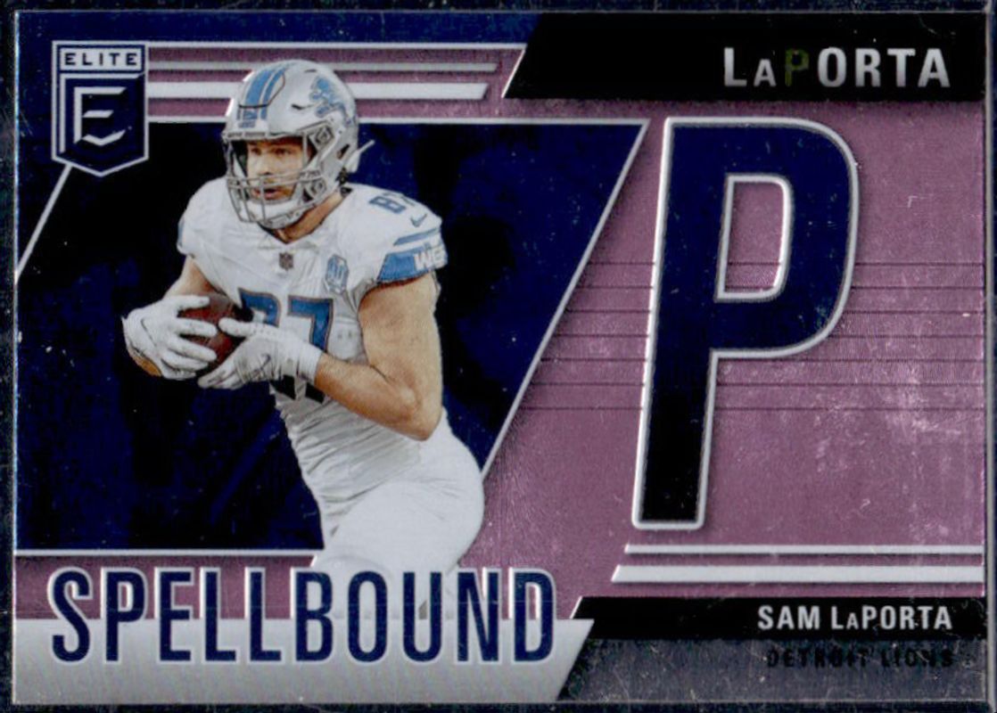 The Sam LaPorta 2024 Elite #7 Spellbound - Pink card is 1 of 96 Sam LaPorta's card variations in the 2024 Elite set being tracked by Sports Card Investor, including Base Rookie /999, Aspirations, Green Disco, Pink, and Status.