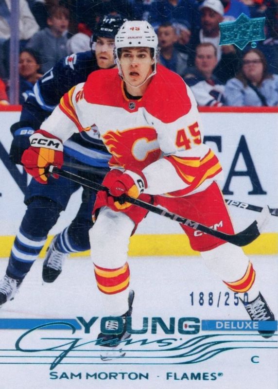 SAM MORTON YOUNG GUNS DELUXE 2025-26 UPPER DECK 250/250 ROOKIE #215 FLAMES RC