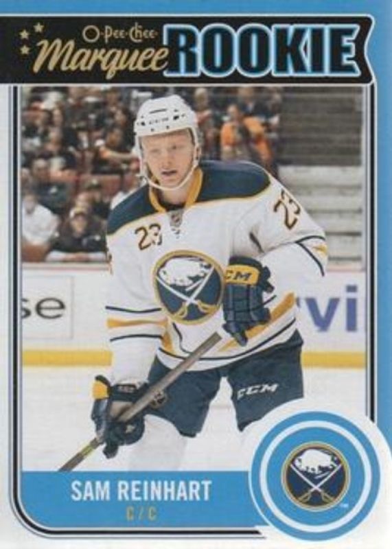 The Sam Reinhart 2014 Upper Deck #U18 2014 O-Pee-Chee Update Rookie card is 1 of 20 Sam Reinhart's card variations in the 2014 Upper Deck set being tracked by Sports Card Investor, including Young Guns Base, Young Guns Canvas, Young Guns - Acetate, Young Guns - UD Exclusives /100, and Young Guns - UD High Gloss /10.