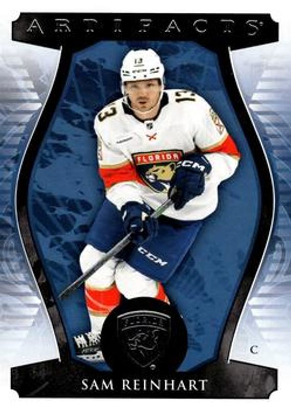 The Sam Reinhart 2023 Upper Deck Artifacts #14 Base /999 card is 1 of 23 Sam Reinhart's card variations in the 2023 Upper Deck Artifacts set being tracked by Sports Card Investor, including Turquoise, Ruby /499, Copper /299, Royal Blue /199, and Emerald /99.