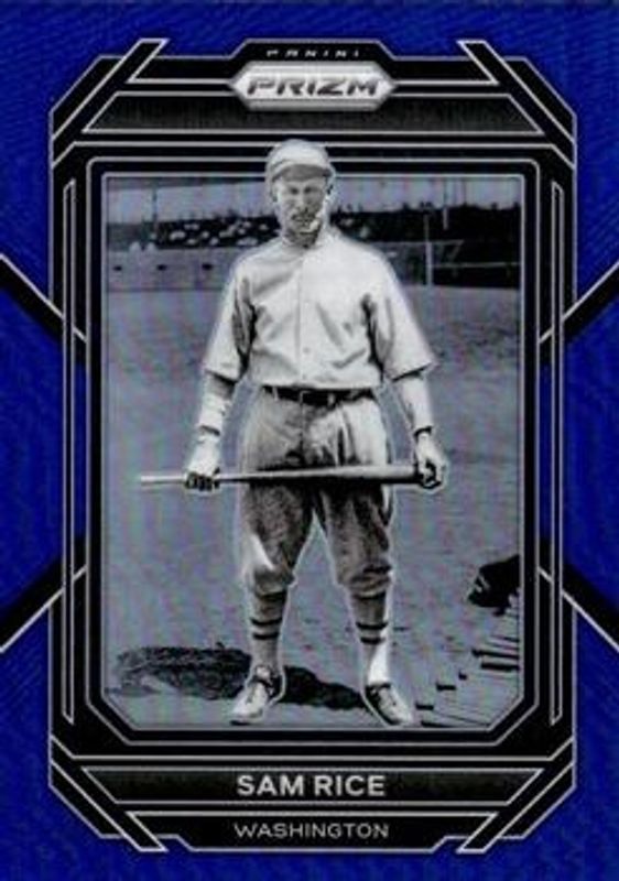 The Sam Rice 2023 Prizm #186 Blue /149 card is 1 of 26 Sam Rice's card variations in the 2023 Prizm set being tracked by Sports Card Investor, including Base, Blue Ice, Giraffe, Green Ice, and Hyper.