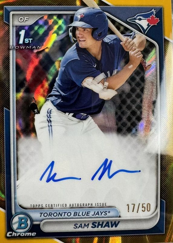 SAM SHAW 2024 1st Bowman Chrome Auto #CPA-SS Gold Lava Refractor /50 Blue Jays