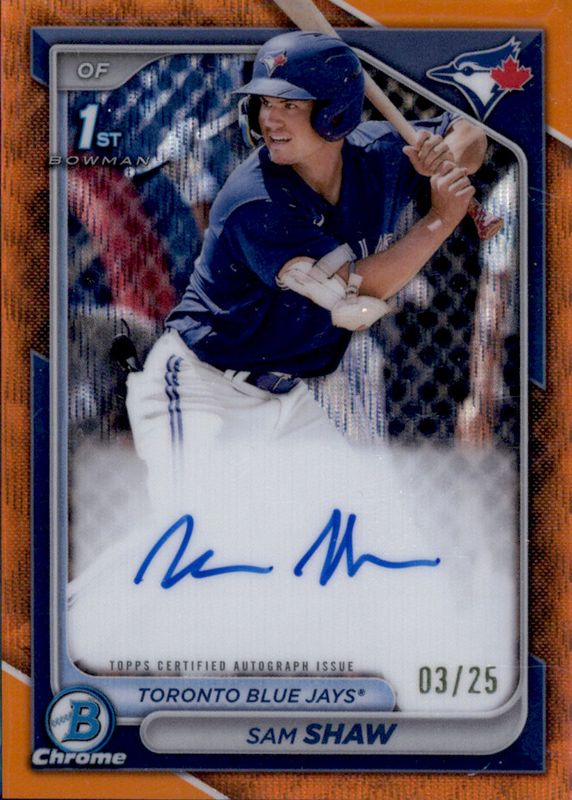Sam Shaw 2024 Bowman #CPA-SS Chrome Prospect Auto - Orange Wave Refractor /25 (1st) RAW Price Guide