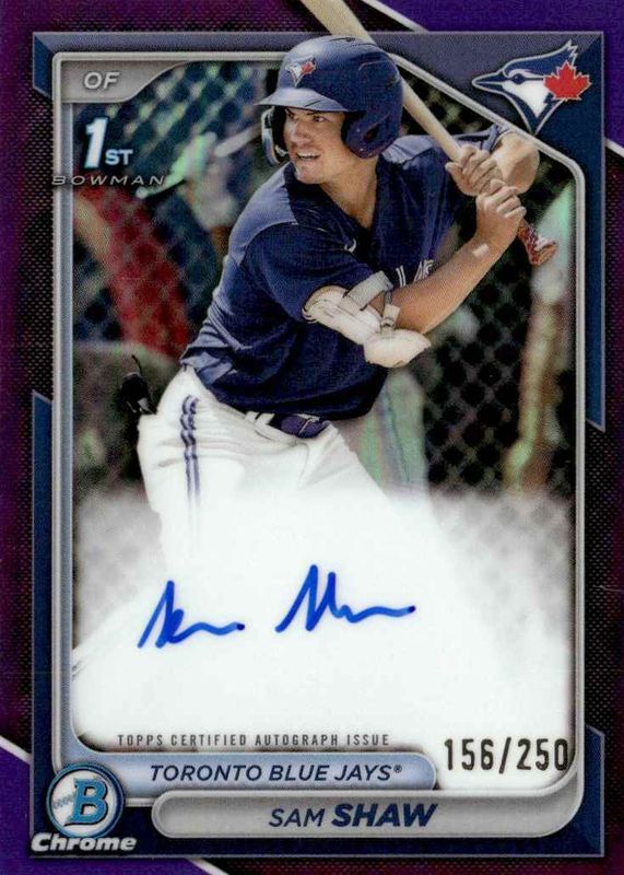 Sam Shaw 2024 Bowman Chrome 1st Auto Purple /250 AU #CPA-SS-Blue Jays
