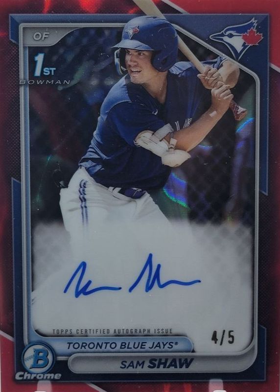 Sam Shaw 2024 Bowman #CPA-SS Chrome Prospect Auto - Red Lava Refractor /5 (1st) RAW Price Guide