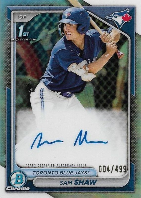 2024 Bowman Sam Shaw Chrome Auto Refractor 1st Prospect #/499 Blue Jays