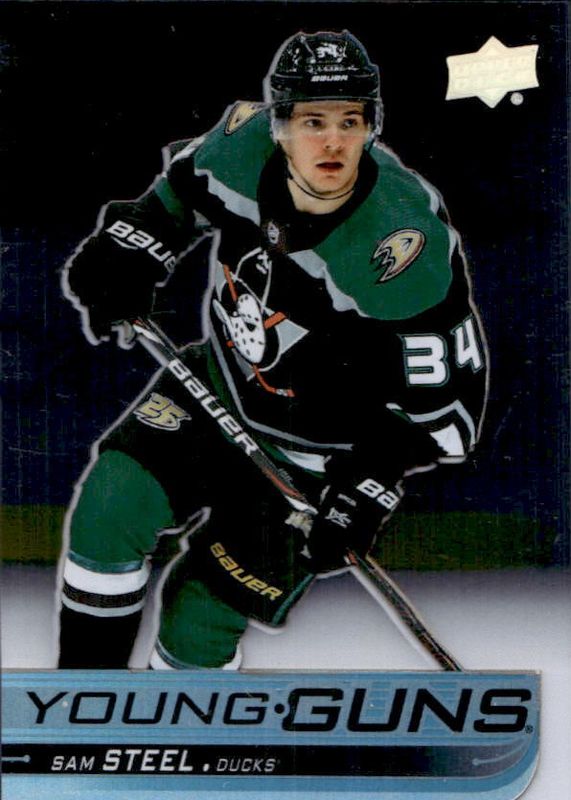 This card is 1 of 7 Sam Steel's card variations in the 2018 Upper Deck set being tracked by Sports Card Investor, including Young Guns Base, Young Guns - Jumbo, Young Guns - Silver Foil, Young Guns - Speckled Rainbow Foil, and Young Guns - UD Exclusives /100.