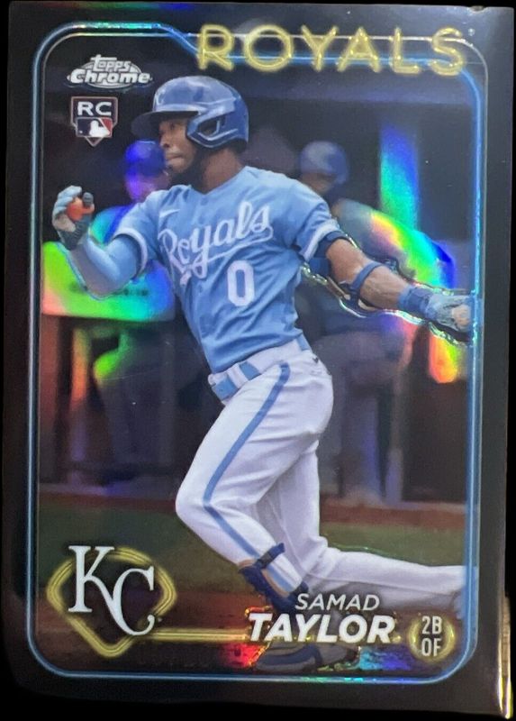 The Samad Taylor 2024 Topps Chrome #243 Black Refractor /10 Rookie card is 1 of 16 Samad Taylor's card variations in the 2024 Topps Chrome set being tracked by Sports Card Investor, including Base, Pink Refractor, Lightboard Logo Refractor, X Fractor, and Aqua Lava Refractor /199.