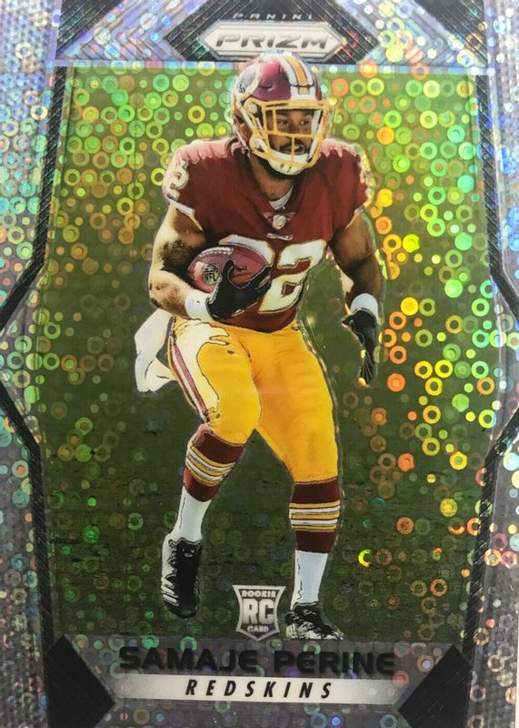 This card is 1 of 19 Samaje Perine's card variations in the 2017 Prizm set being tracked by Sports Card Investor, including Green, Pink, Red White Blue, Silver, and Orange /275.