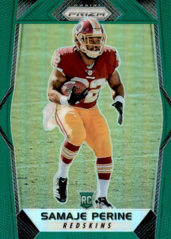 The Samaje Perine 2017 Prizm #255 Green Rookie card in Raw condition has not changed in price in the last 30 days and was last sold for $1.75 .