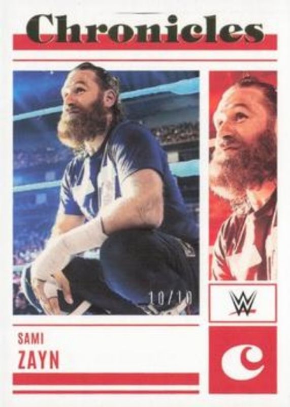 The Sami Zayn 2023 Chronicles WWE #46 Gold /10 card is 1 of 67 Sami Zayn's card variations in the 2023 Chronicles WWE set being tracked by Sports Card Investor, including #323 Base, #264 Base, #166 Base, #397 Base, and #46 Base.