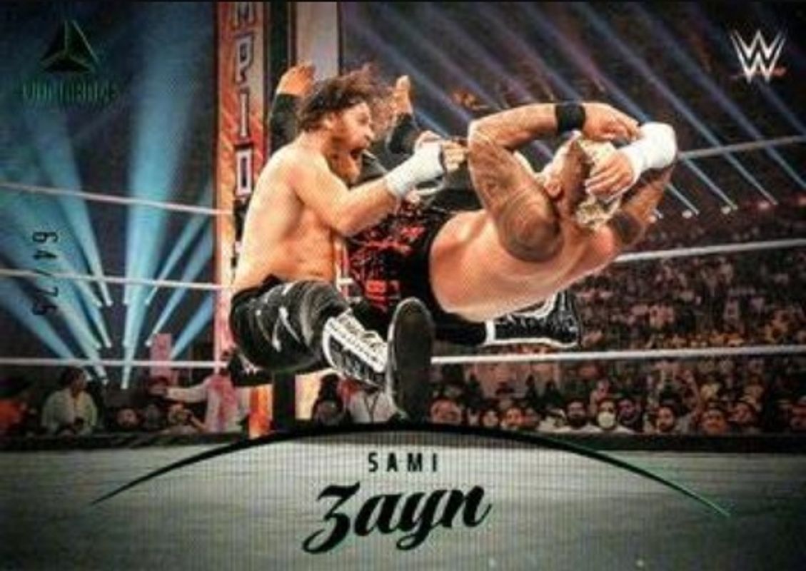 The Sami Zayn 2023 Chronicles WWE #166 Green /75 card is 1 of 67 Sami Zayn's card variations in the 2023 Chronicles WWE set being tracked by Sports Card Investor, including #323 Base, #264 Base, #166 Base, #397 Base, and #46 Base.