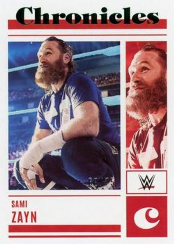 The Sami Zayn 2023 Chronicles WWE #46 Green /75 card is 1 of 67 Sami Zayn's card variations in the 2023 Chronicles WWE set being tracked by Sports Card Investor, including #323 Base, #264 Base, #166 Base, #397 Base, and #46 Base.