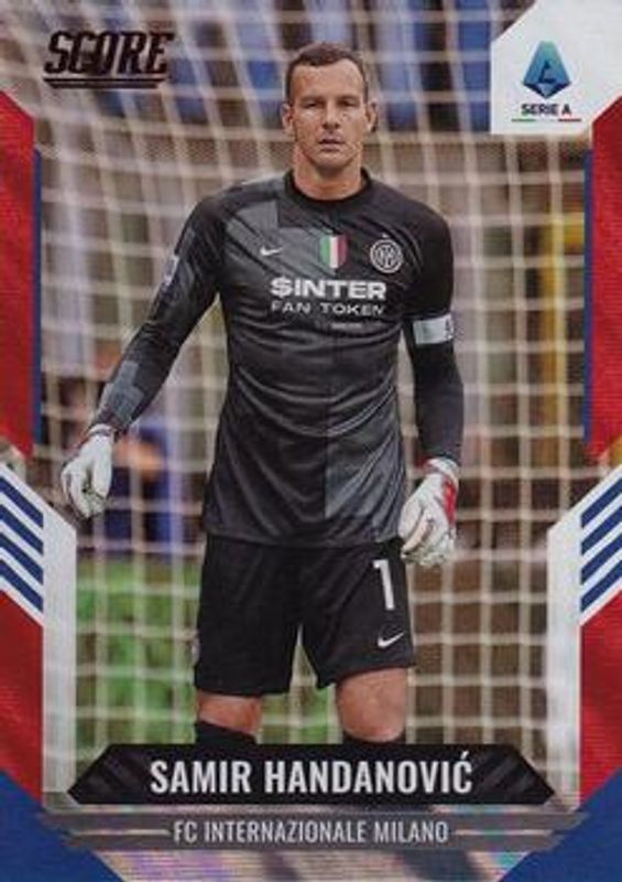 The Samir Handanovic 2021 Score Serie A #1 Red Lava card is 1 of 26 Samir Handanovic's card variations in the 2021 Score Serie A set being tracked by Sports Card Investor, including Base, Red Laser, Orange Lava /99, Blue Laser /49, and Blue Lava /49.